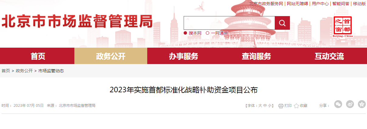 2023年實(shí)施首都標(biāo)準(zhǔn)化戰(zhàn)略補(bǔ)助資金項目公布